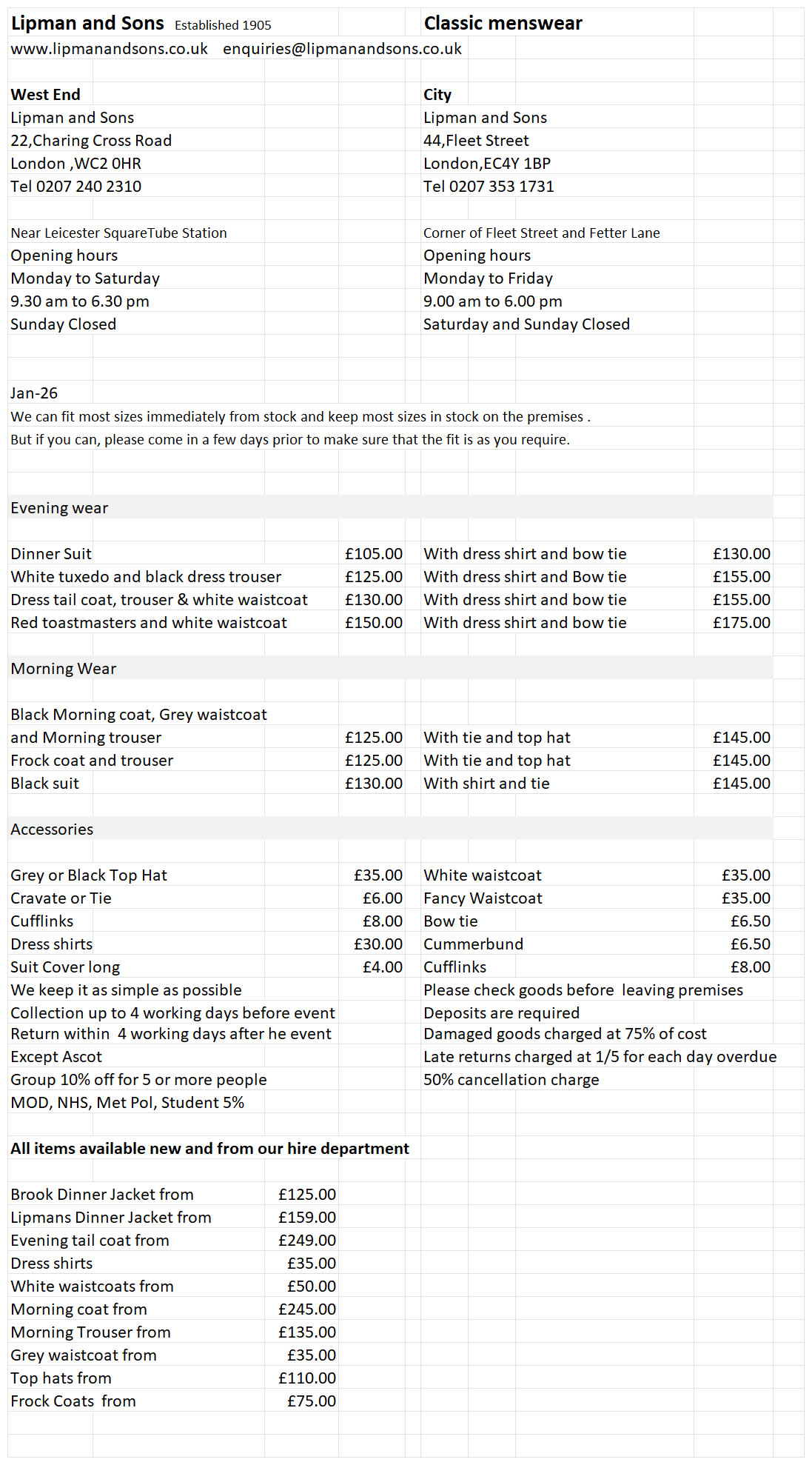 Lipman & Sons – Elegant formal wear, to hire or buy.
